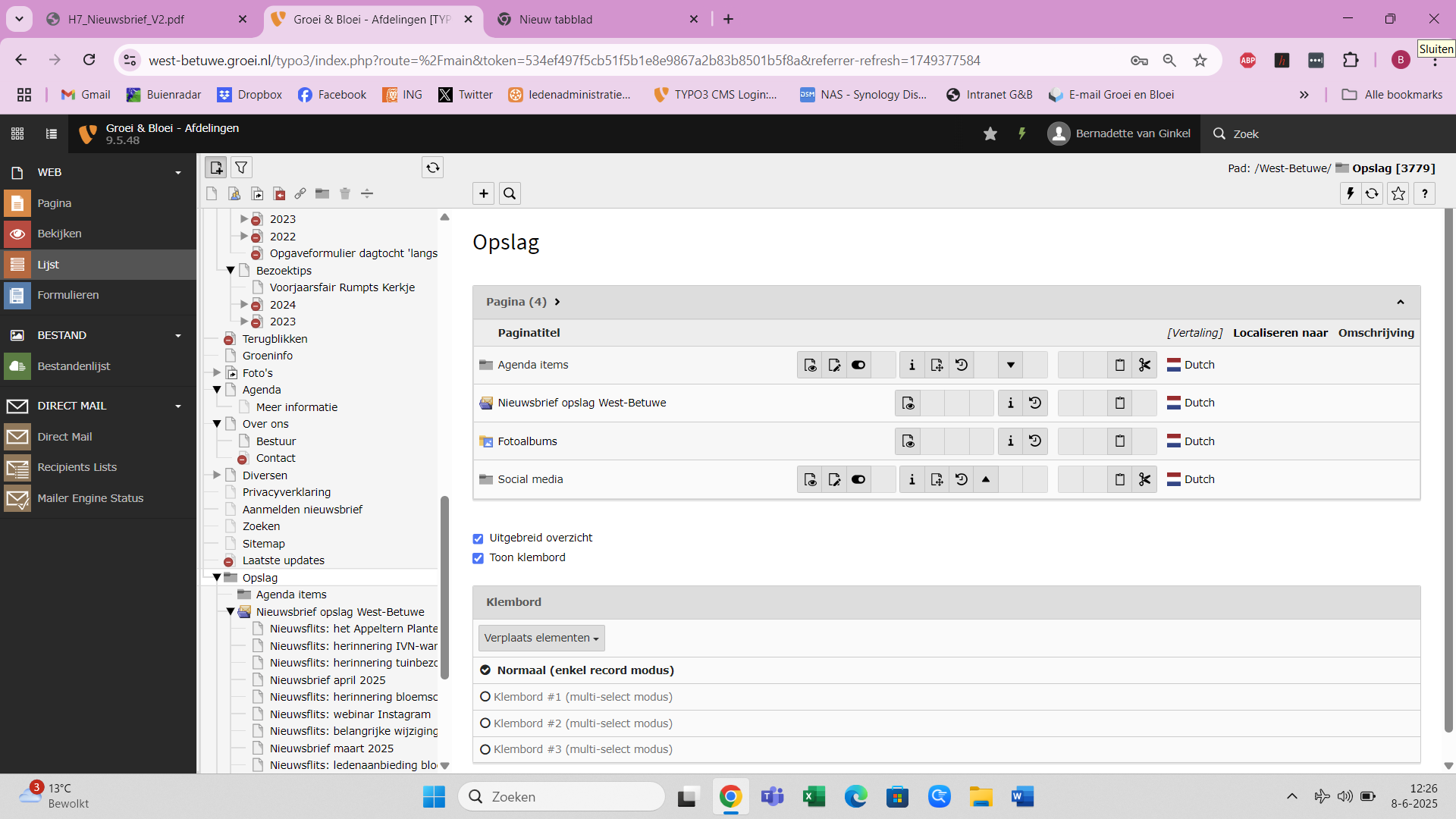 Scroll dan in de tweede kolom naar beneden en klik op Nieuwsbrief opslag West_betuwe.