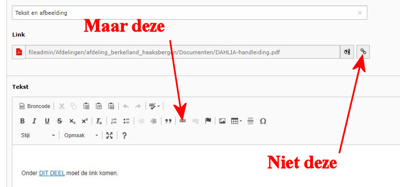 Het te linken document komt niet onder het tekstdeel maar onder de KOP van het element.